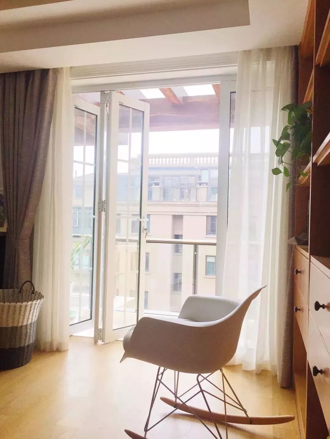 阳台和客厅直接也是如此,很多人都在纠结客厅阳台直接要不要装推拉门隔断,你选择折叠门就可以得到两种效果。