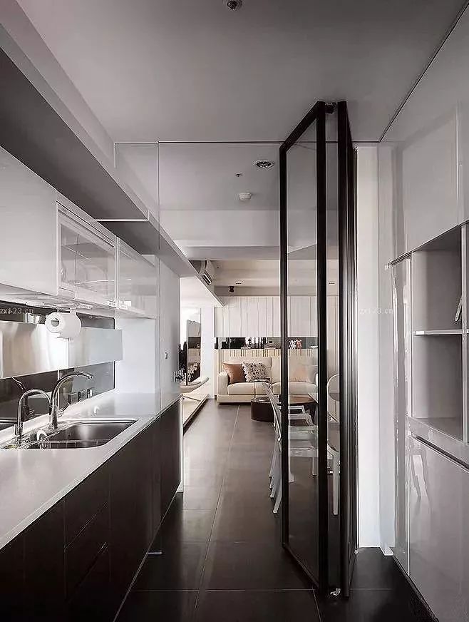 而且选择了折叠门之后,厨房也可以变成成开放式的厨房,平时都不用关门~做饭的时候关上,隔离一下油烟就好。